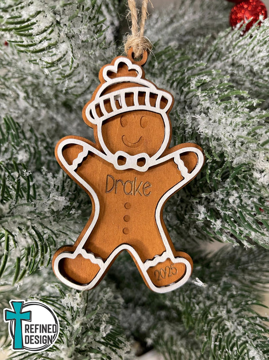 Personalized Winter Beanie Gingerbread Boy Ornament