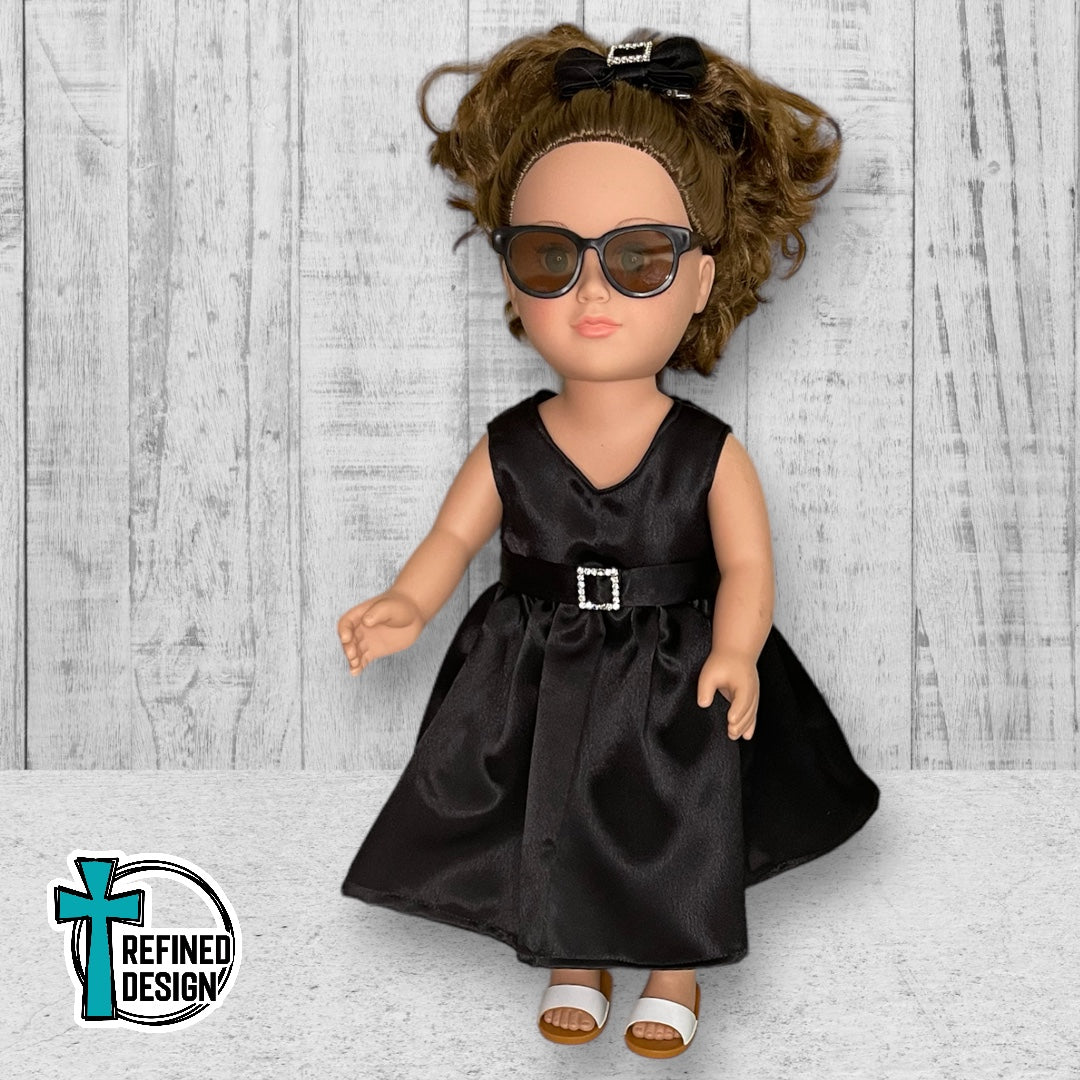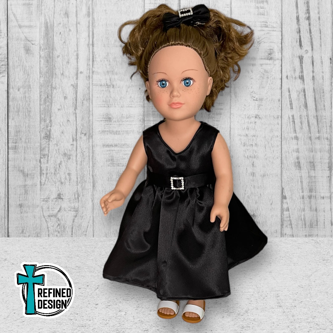 “Black Satin and Rhinestones” 18" Doll Dress and Accessories
