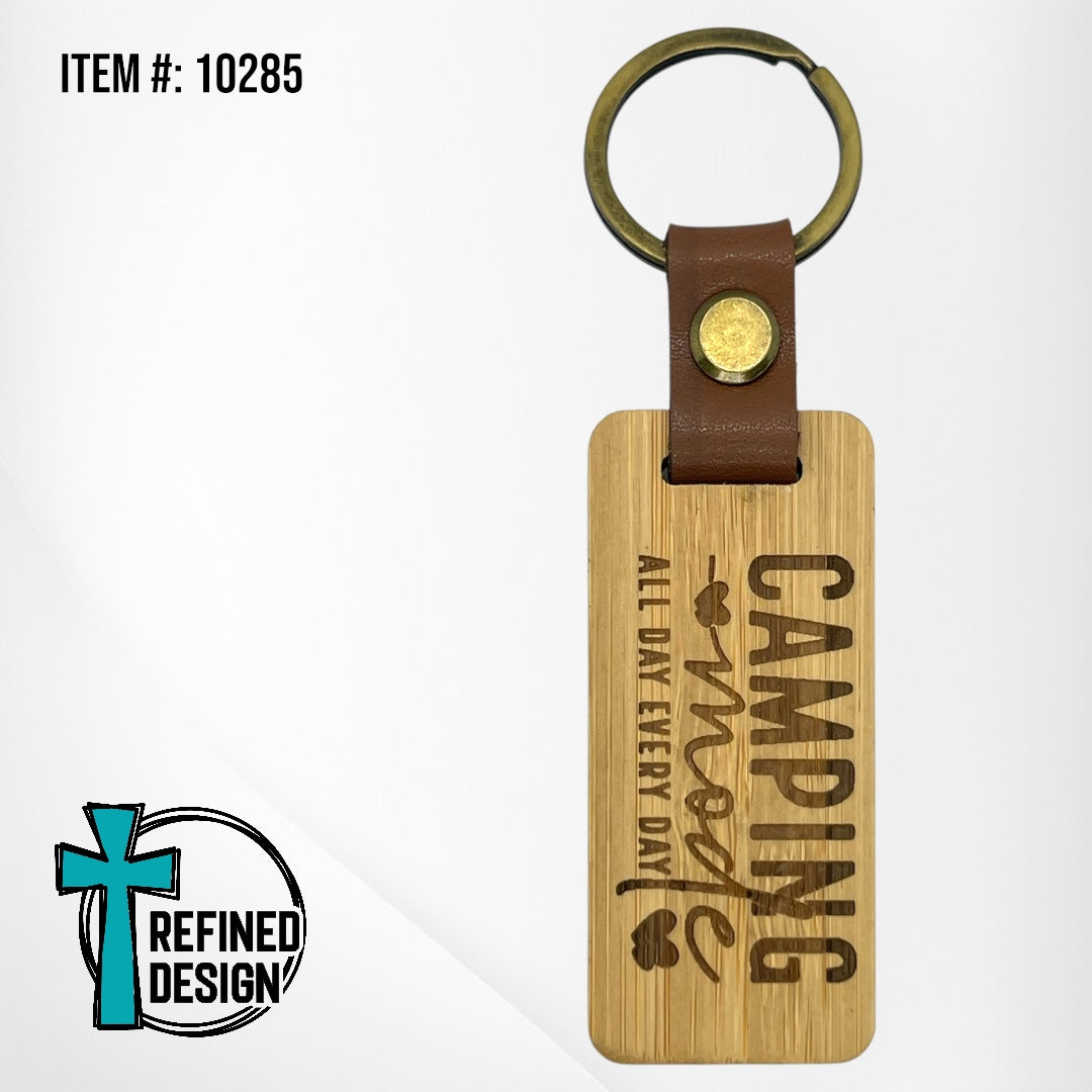 “Camping Mode - All Day Every Day” Wood and Leather Keychain