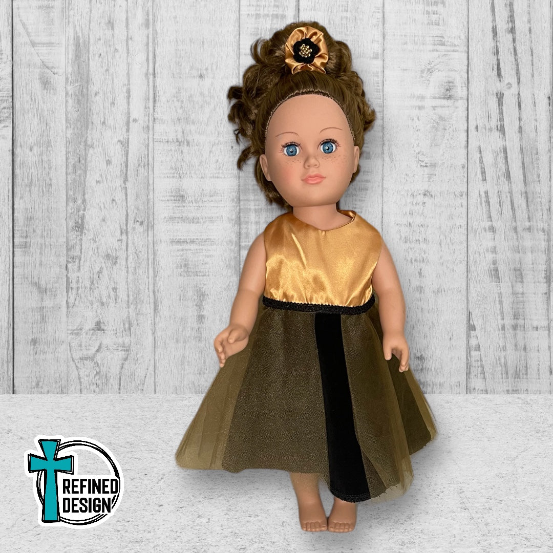 “Black and Gold Satin” 18" Doll Dress and Accessories