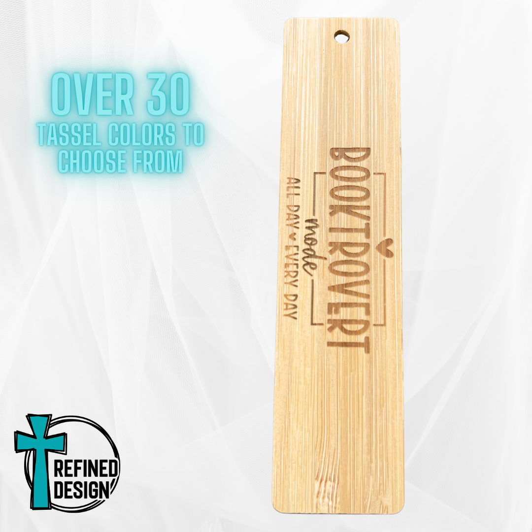 This beautiful Bamboo Bookmark is 4.7" L x 1.18" W, it comes with a soft polyester tassel, available in over 30 colors (Please see color options in photos).