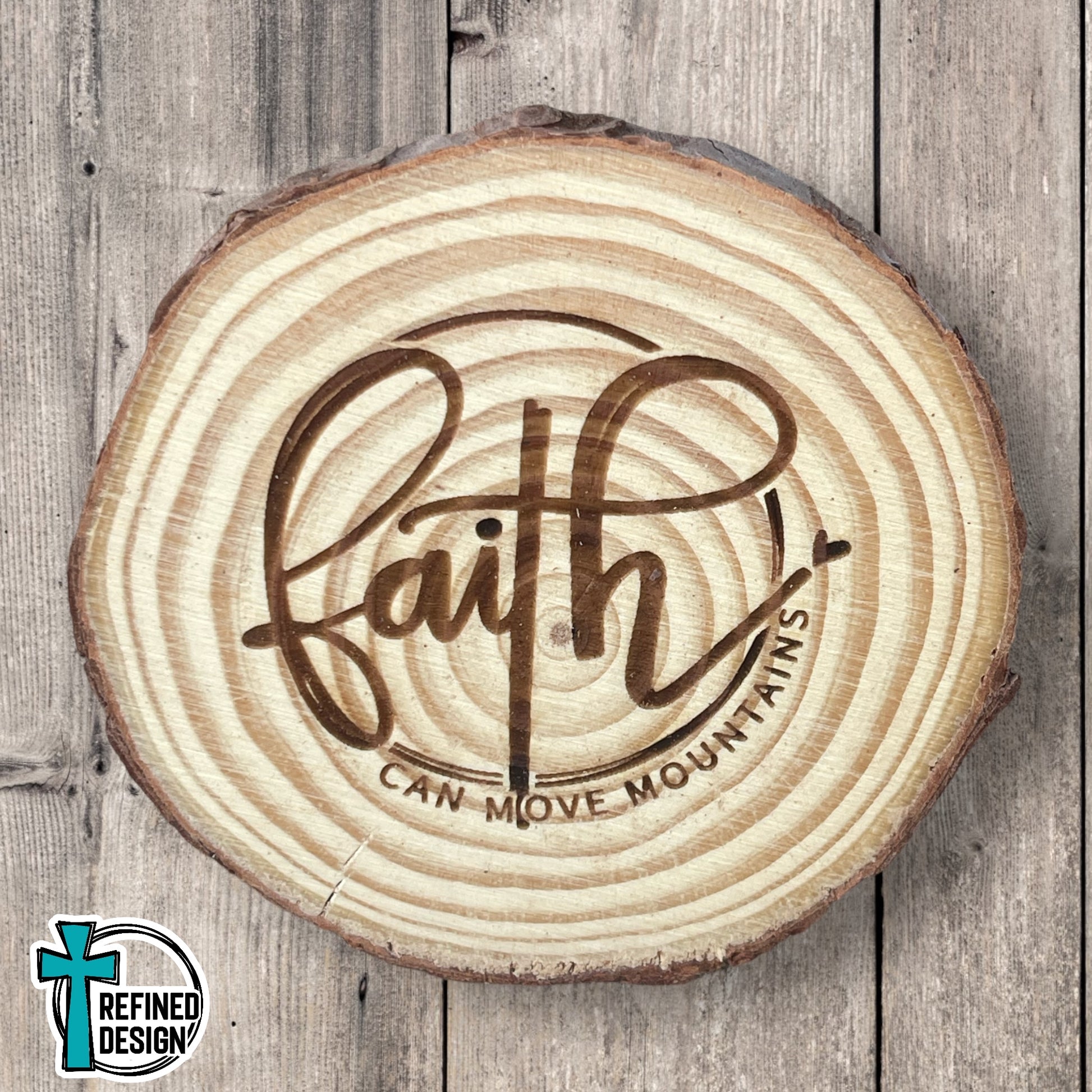 “Faith Can Move Mountains” #2 Rustic wood slice