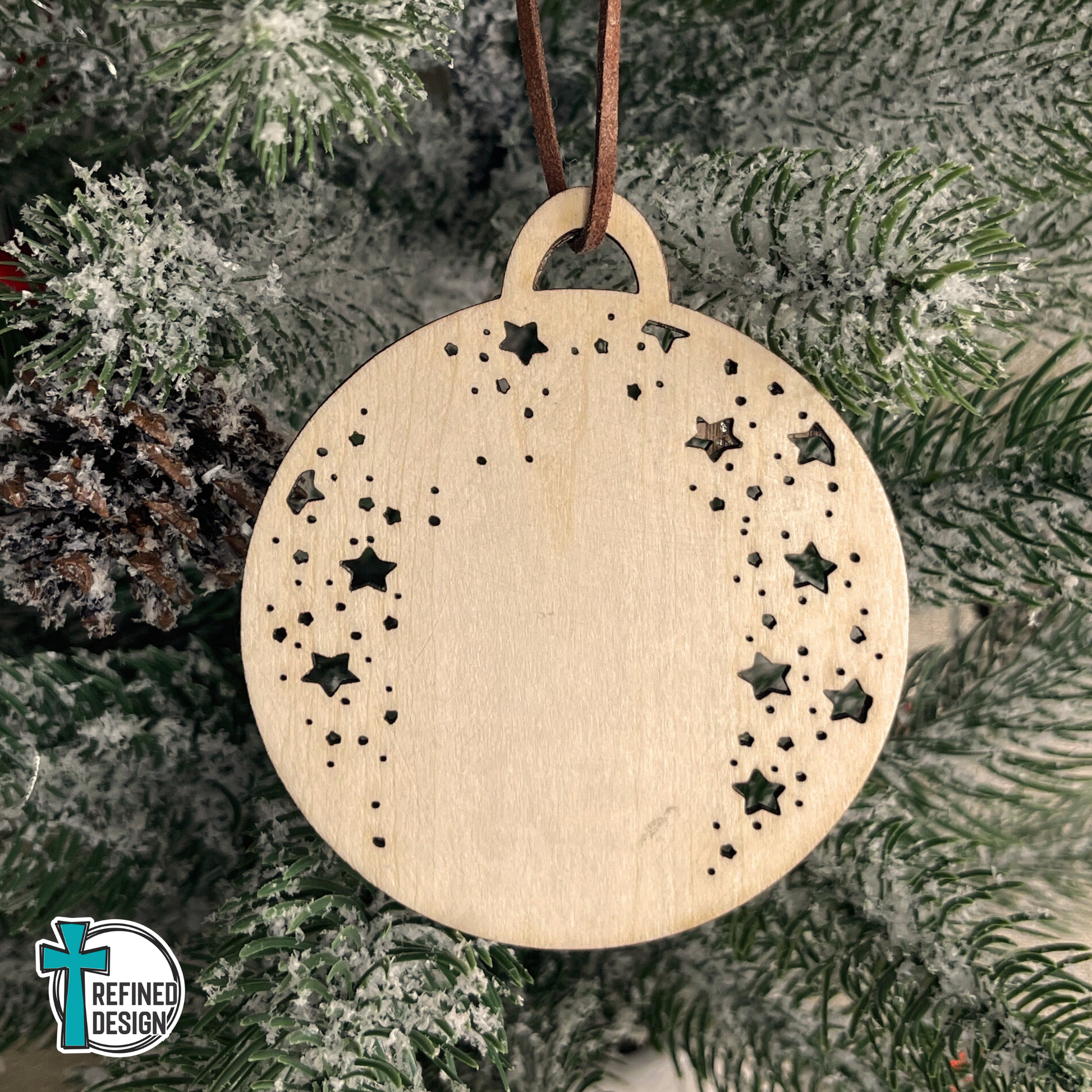 Honor the heart of Christmas with our Personalized Starry Nativity Layered Ornament, beautifully designed to showcase the holy moment of Jesus’ birth. This detailed ornament features Mary, Joseph, and baby Jesus surrounded by a star-filled night sky, all crafted in a stunning layered wood design that adds depth, warmth, and meaning to your tree.