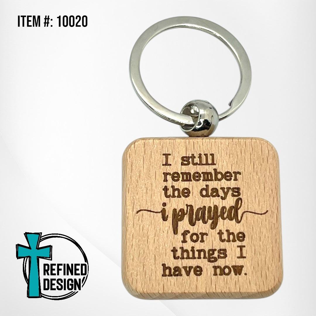 Design is laser engraved on this smooth wooden square keychain. Wooden disk is 1.57 x 1.57 inches and 0.7 cm / 0.28 inch / 7 mm thick. The key ring is a sturdy stainless steel.