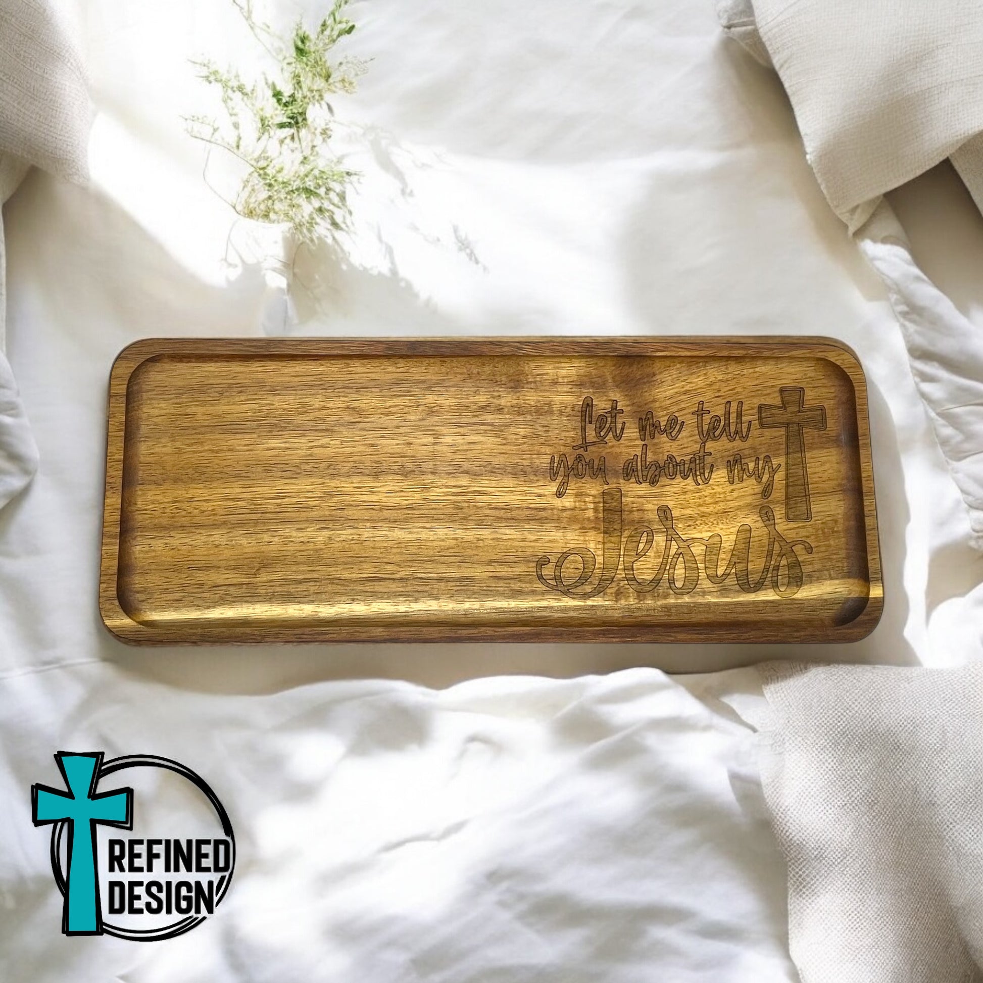 This versatile tray is perfect for serving appetizers, holding trinkets, or keeping essentials organized on your desk or nightstand. Add a personal touch with a custom name or message, making it a unique keepsake or a thoughtful gift. Celebrate faith and function with this one-of-a-kind piece.
