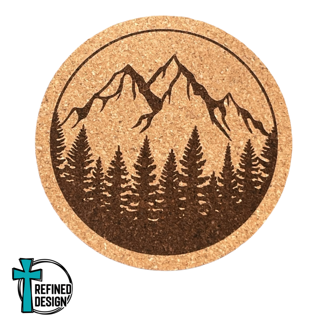 "Mountains Full Circle" Cork Coaster