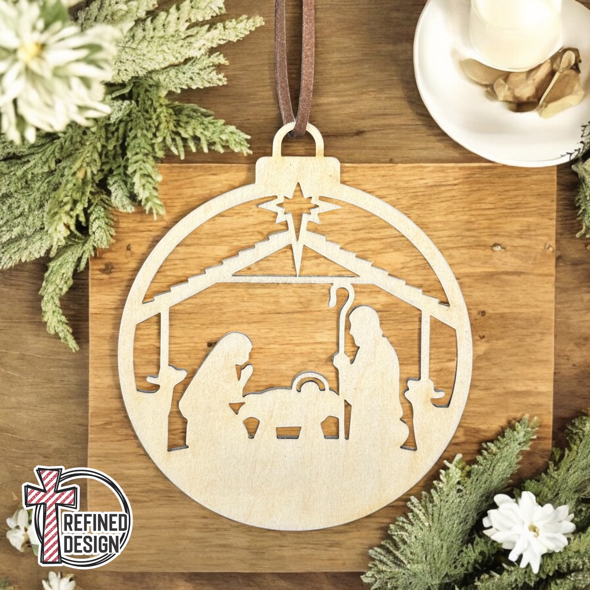 Personalized Nativity Laser Cut Wooden Ornament