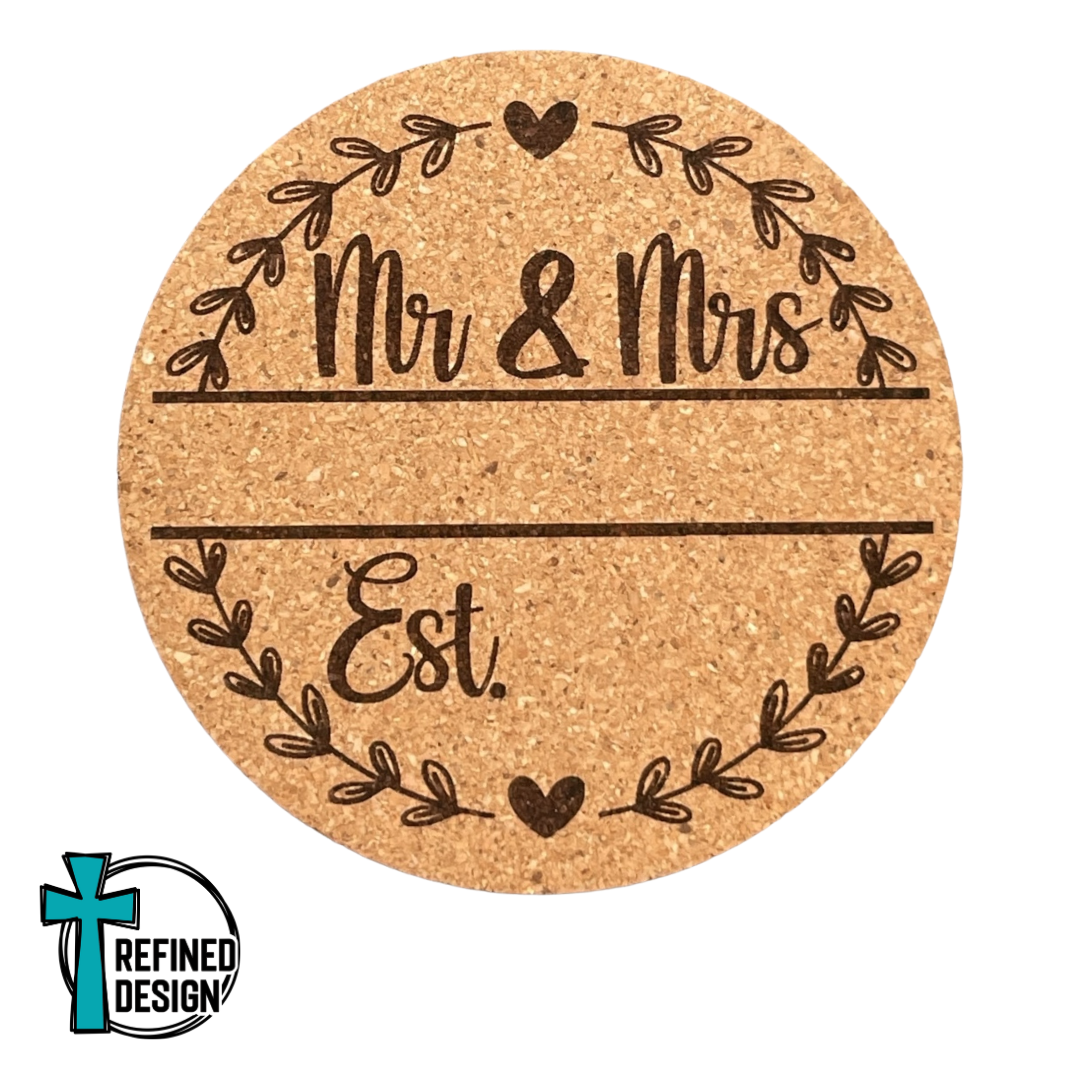 Cork coasters are a warm and inviting detail to your home or special event. These charming coasters combine functionality and personality - and are customizable to fit your needs. Perfect for weddings, birthday parties, bridal showers, baby showers, retirement parties, or smaller gatherings with your friends. These high-quality cork coasters measure 3.5" round and are 0.2 inches (5mm) thick. They are absorbent and flexible, and their clean and durable designs are laser engraved making them well defined and long-lasting. This design is engraved on one side, and the reverse side is blank - ready for a personalized message. Send a message to orders.refined.design@gmail.com to personalize your coasters.
