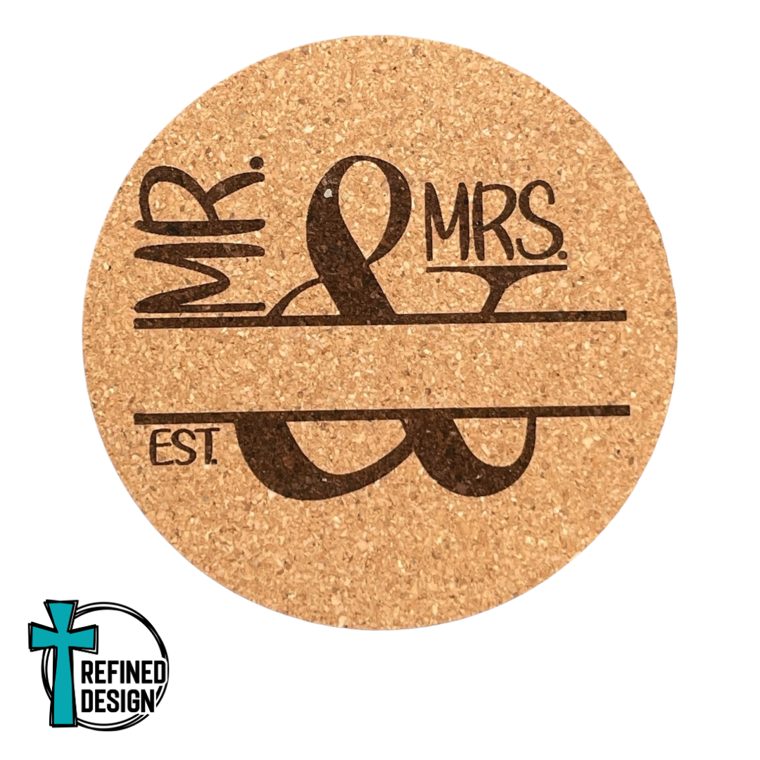 "Personalized Mr. & Mrs. Split 06" Cork Coaster