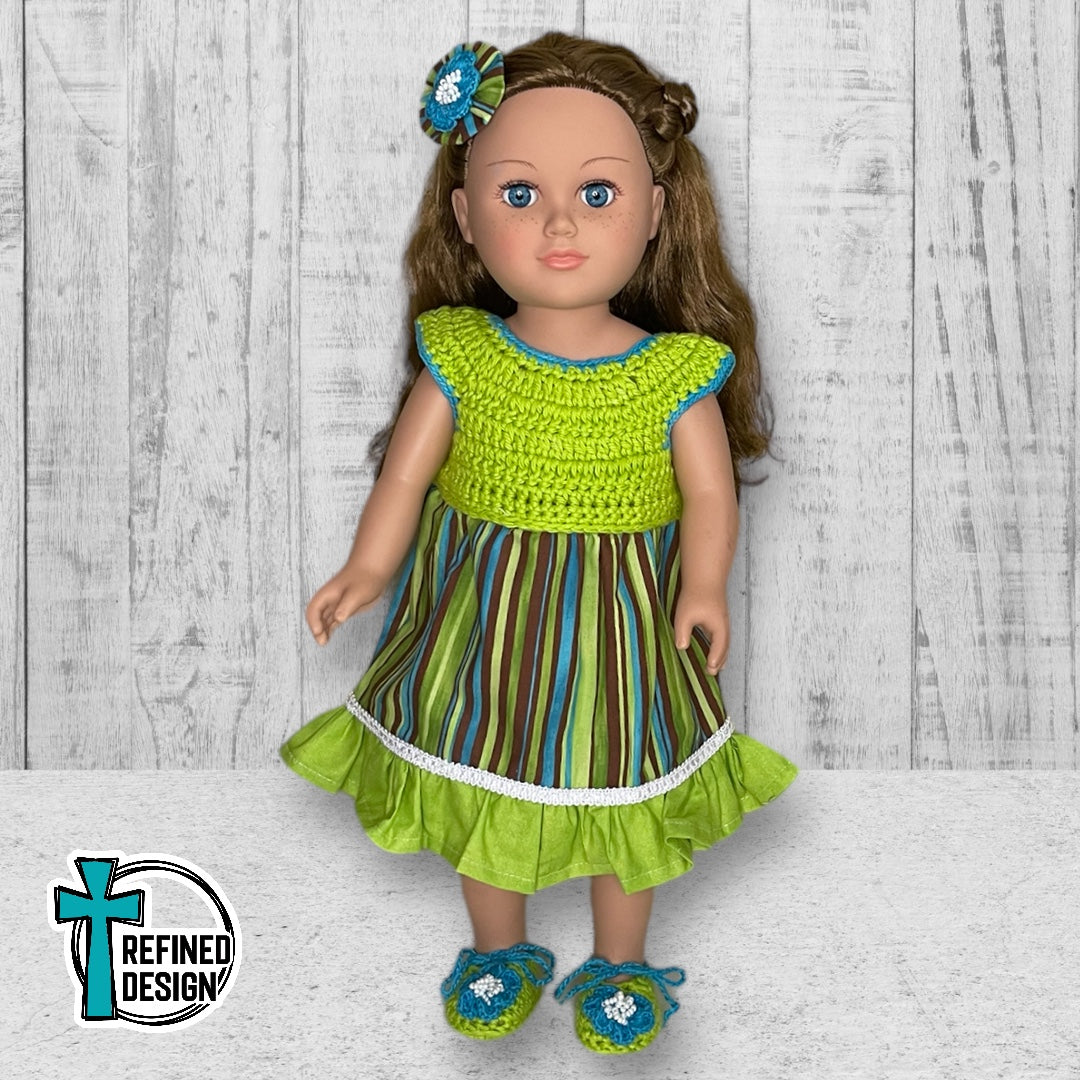 “Teal and Lime Stripes" 18" Doll Dress and Accessories