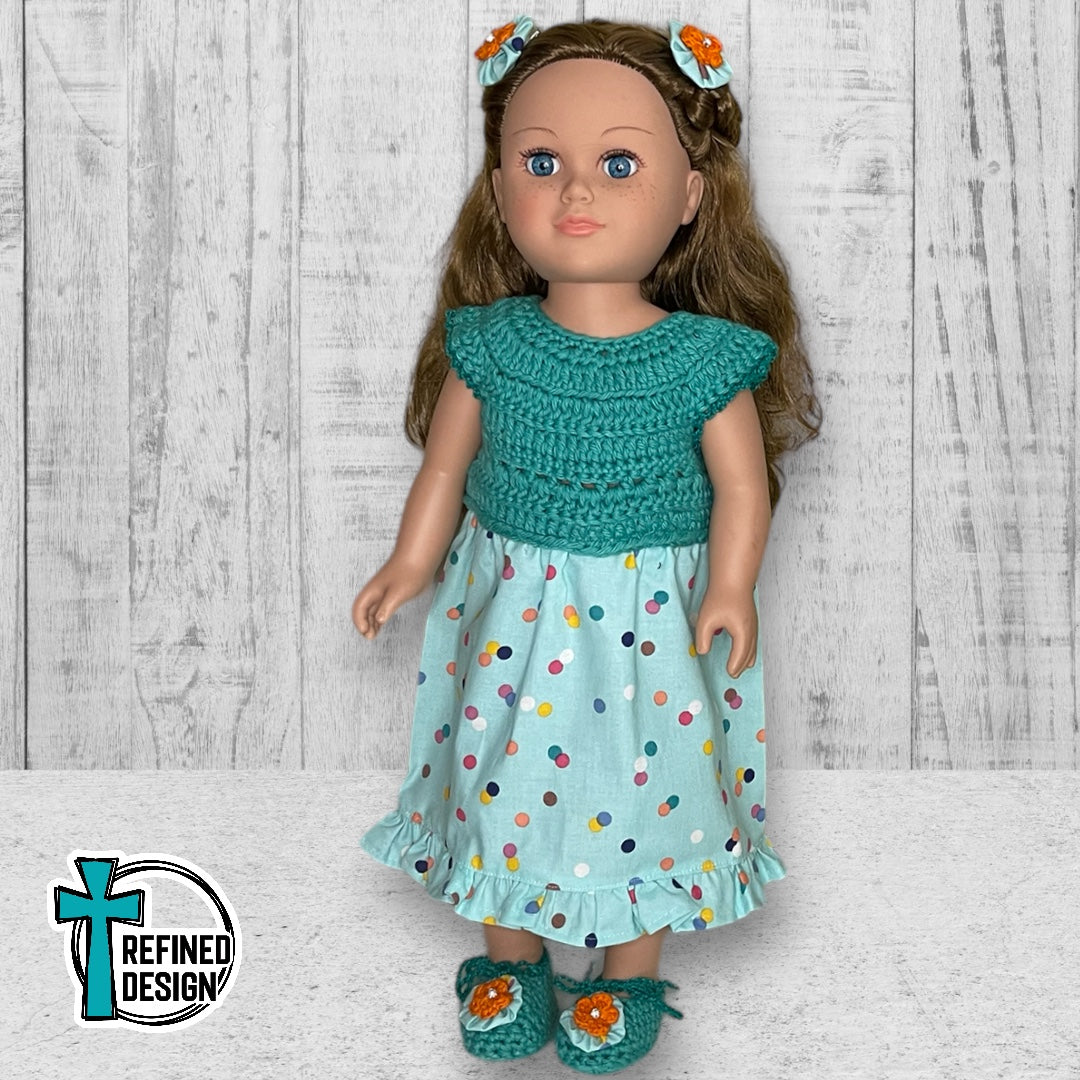"Teal and Orange Polka Dots" 18" Doll Dress and Accessories